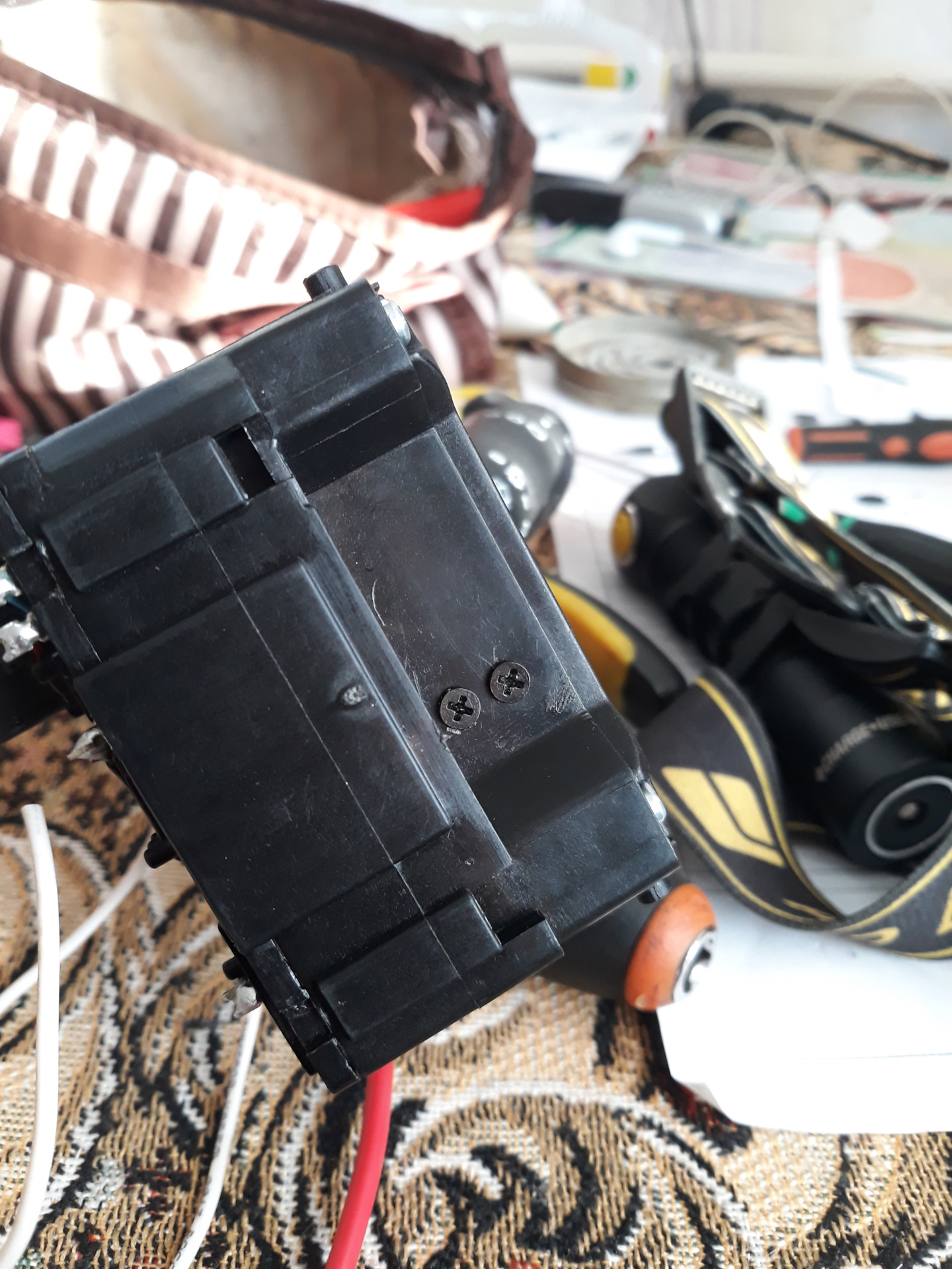 3. Припаять провода к микропереключателю, размещаем его в корпусе так, чтобы при небольшом движении рычага вверх происходило нажатие на микропереключатель.