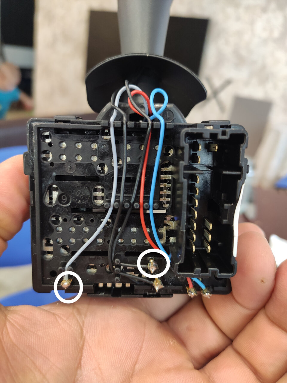 Если подрулевой переключатель имеет режим «Авто», тогда припаять провода нужно к другим проводам (на практике не проверялось):