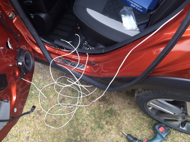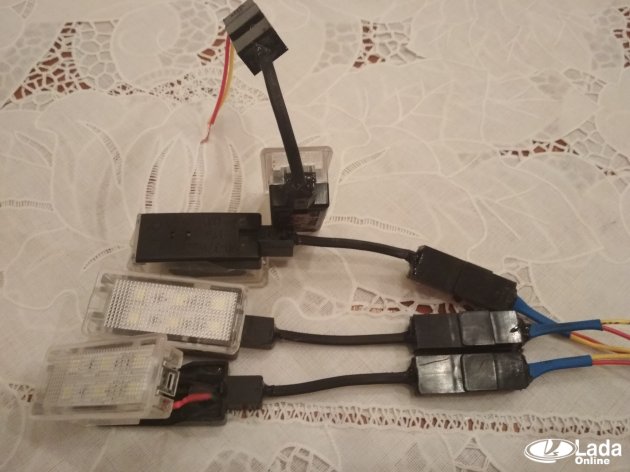 Кстати, вместо плафона для подсветки зоны около машины можно использовать светодиодную ленту. Она крепится при помощи двухстороннего скотча, поэтому отверстий в обшивке дверей делать не нужно (см. пример на Лада Гранта).