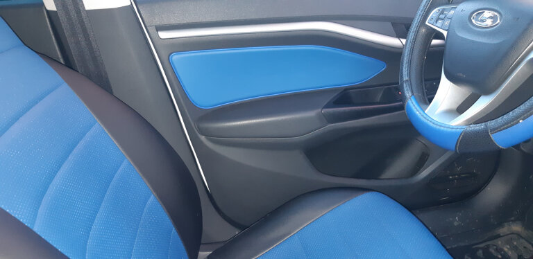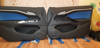 Еще один из вариантов обтяжки кожей дверных карт на Лада Веста: