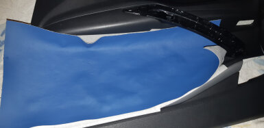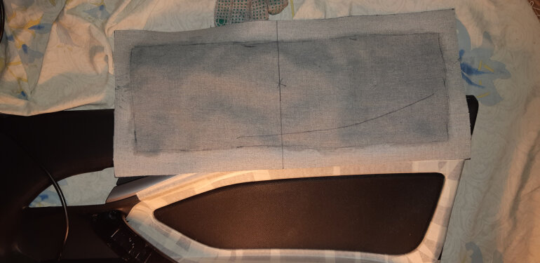 3. Раскраиваем кожзам, с запасом. На вставки задних дверей размеры, примерно 65см на 30 см, на вставки передних дверей – 55см на 20см.