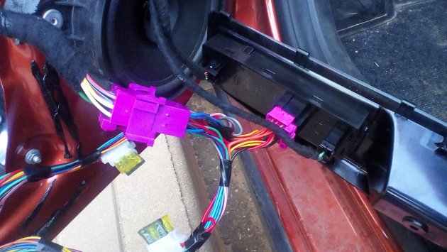 На машинах до 2018 года подключение производиться к блоку управления стеклами, который находится в двери водителя (провода из среднего, большого разъема):