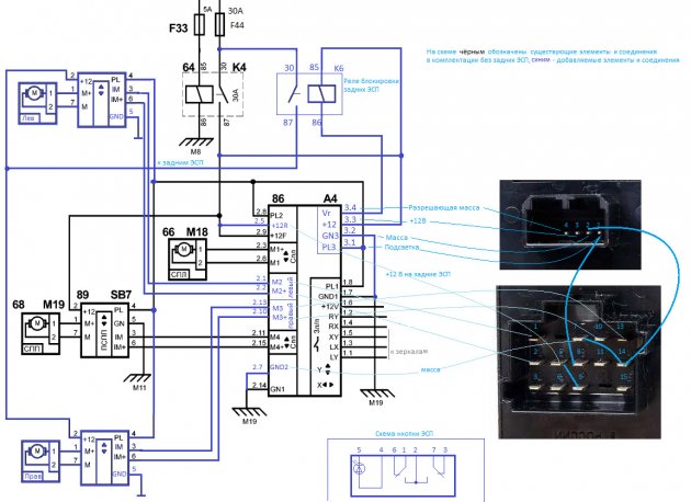 Устанавливаем новый блок управления ЭСП и переключатели ЭСП для задних пассажиров.