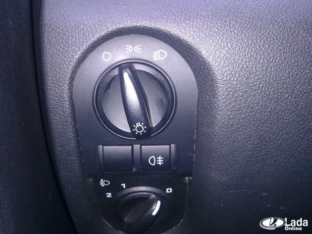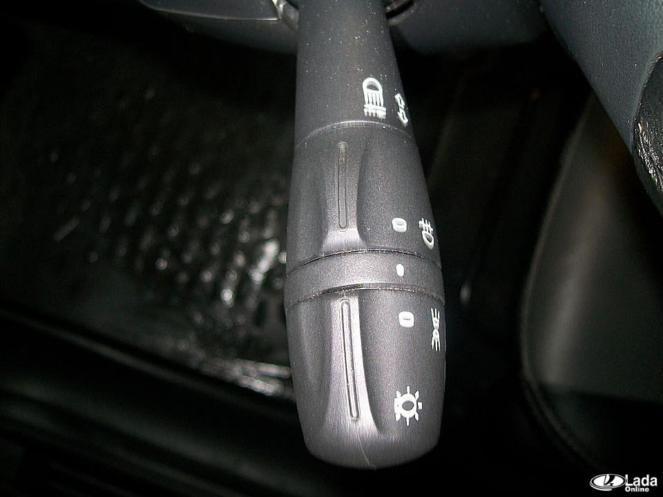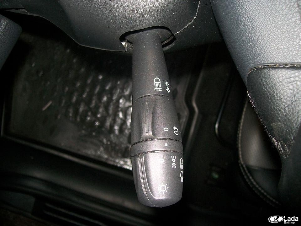 Чтобы отключить ДХО на автомобилях LADA (XRAY, Веста и Ларгус), у которых управление светом осуществляется при помощи левого подрулевого переключателя, следует аналогичным образом выставить положение регулятора в промежуточное положение (фото №3).