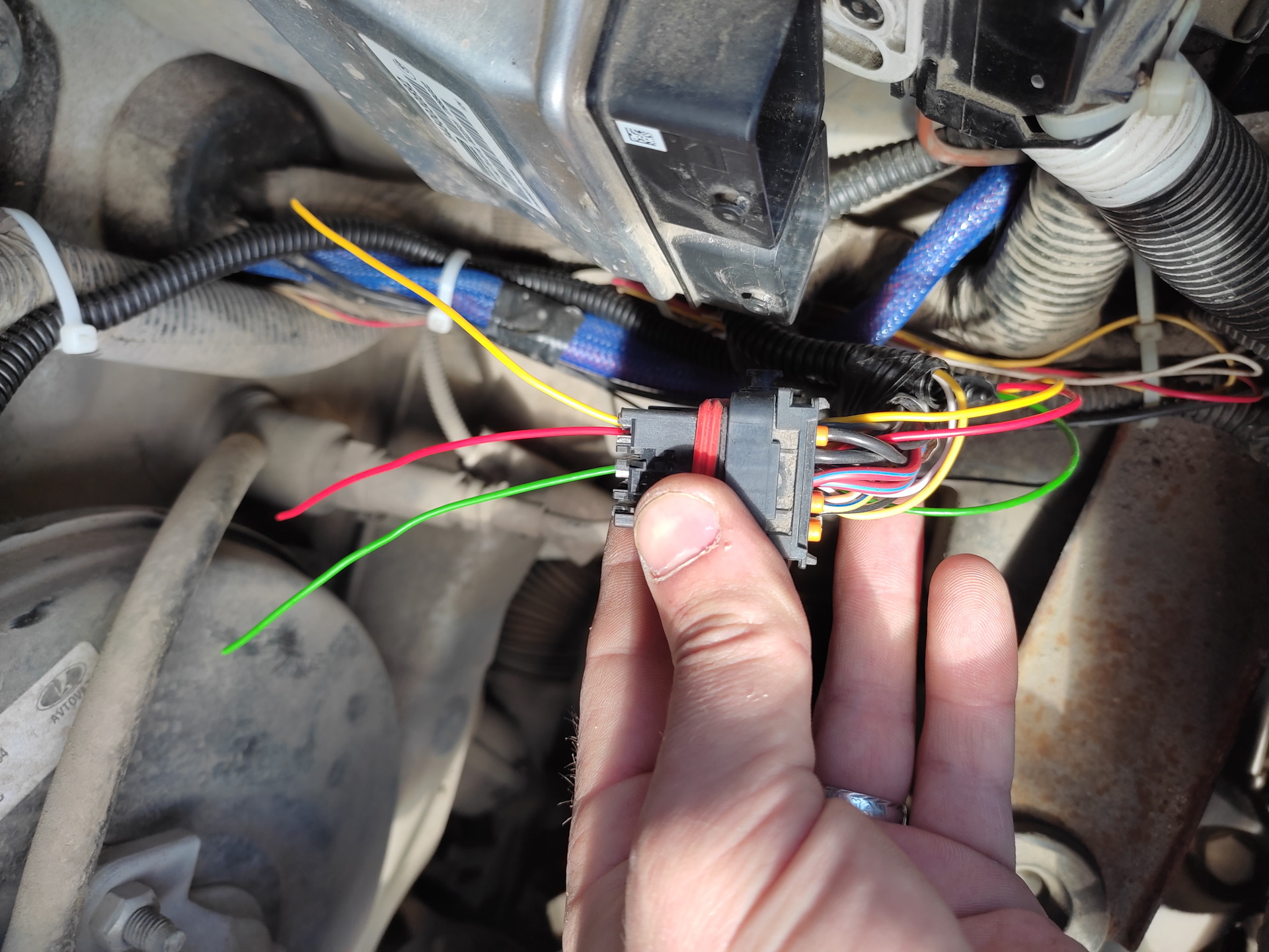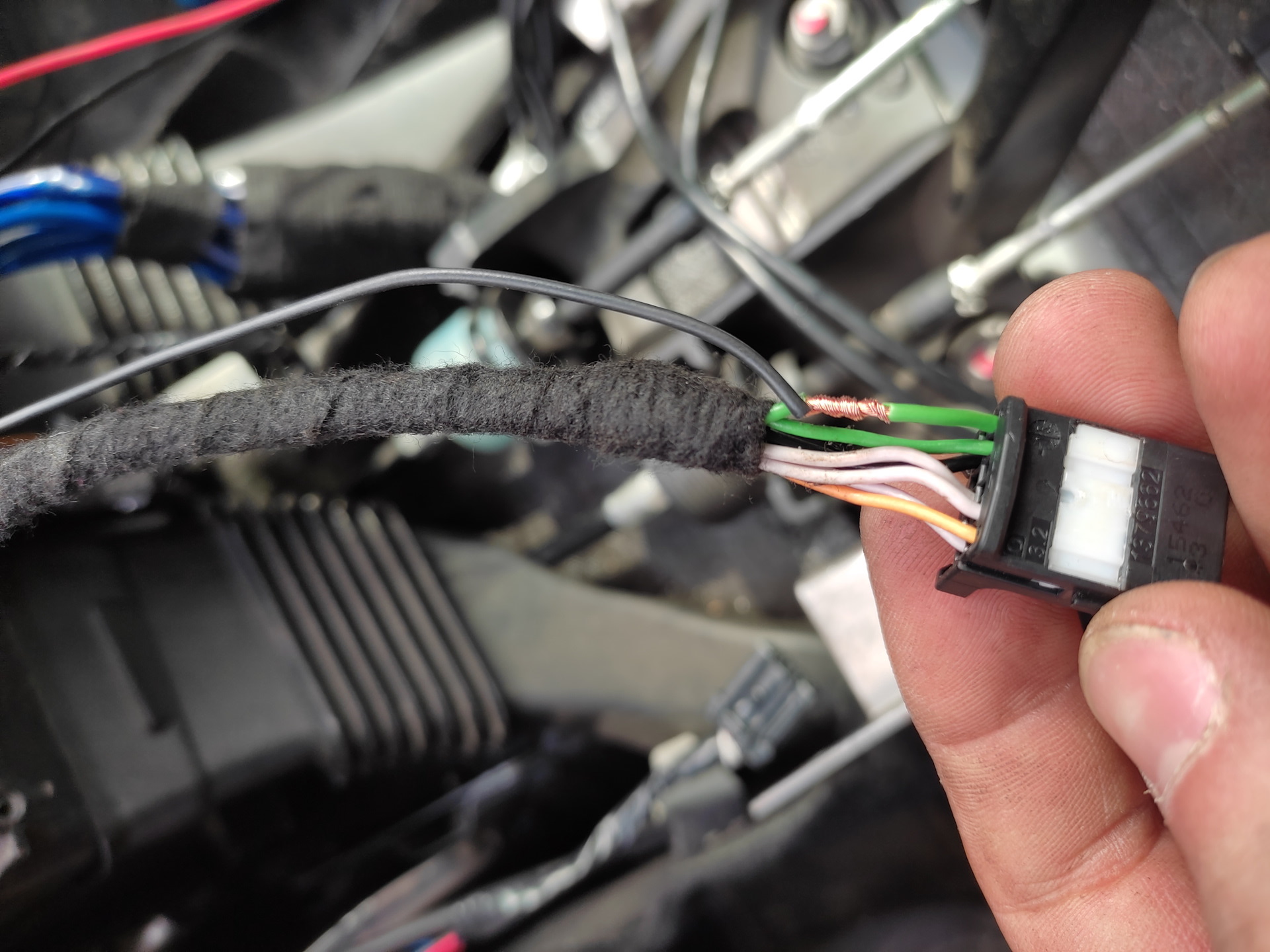 Запиновываем и J5 в нижней колодке ЭБУ, прокидываем в салон и прячем, нам его подключать к блоку управления печкой на пин A7