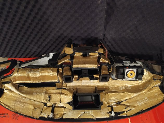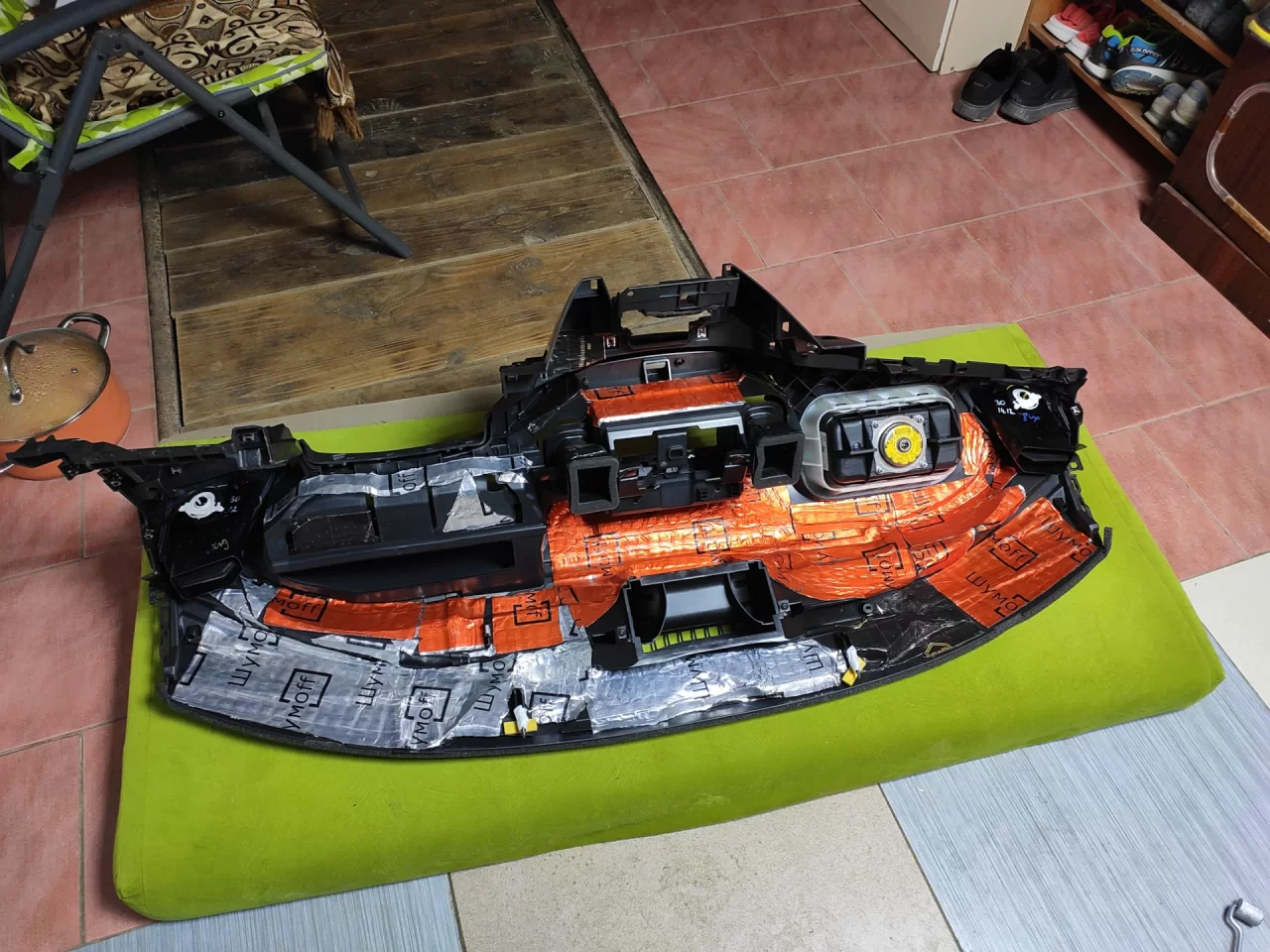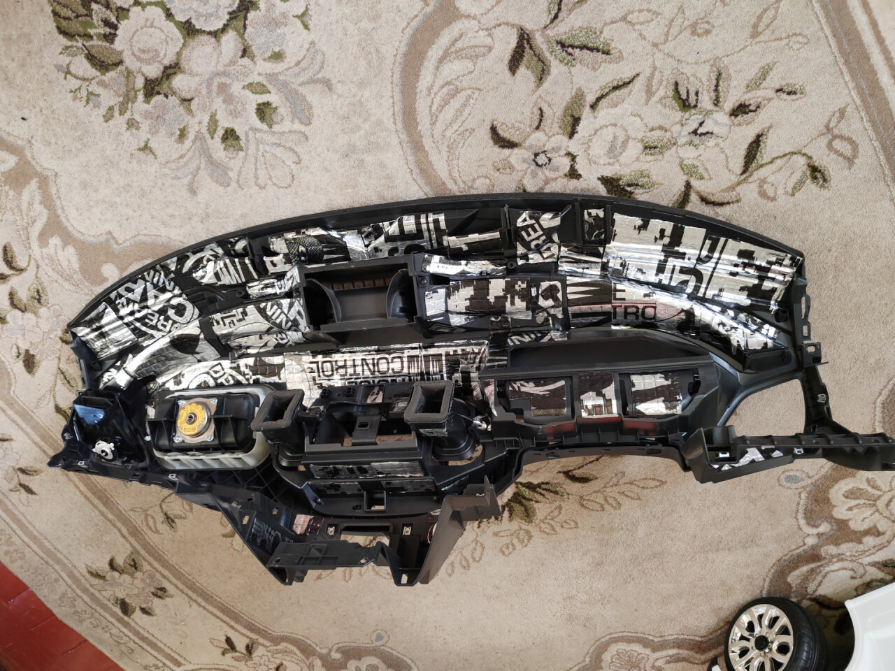 Антискрип (например, маделин) наклеиваем на все места крепления панели (исключит скрипы), а также этим же материалом окутываем жгуты с проводами (исключит дребезг). Также уделите внимание внешним элементам торпедо (дефлекторы воздуховодов, центральная консоль и рамка магнитолы, комбинация приборов и т.д.)
