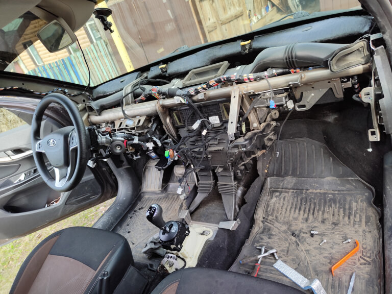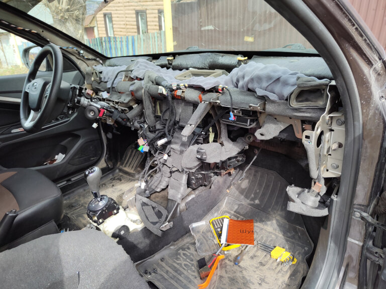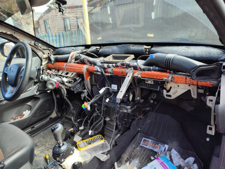 Процесс ШВИ панели показан на примере автомобиля Lada Vesta. На других современных автомобилях LADA (XRAY, Largus, Priora, Granta, Kalina, Lada 4x4) все действия выполняются аналогично. Принципиальные отличия будут только в этапе снятия торпедо (инструкция: для Lada Vesta, для Lada XRAY).