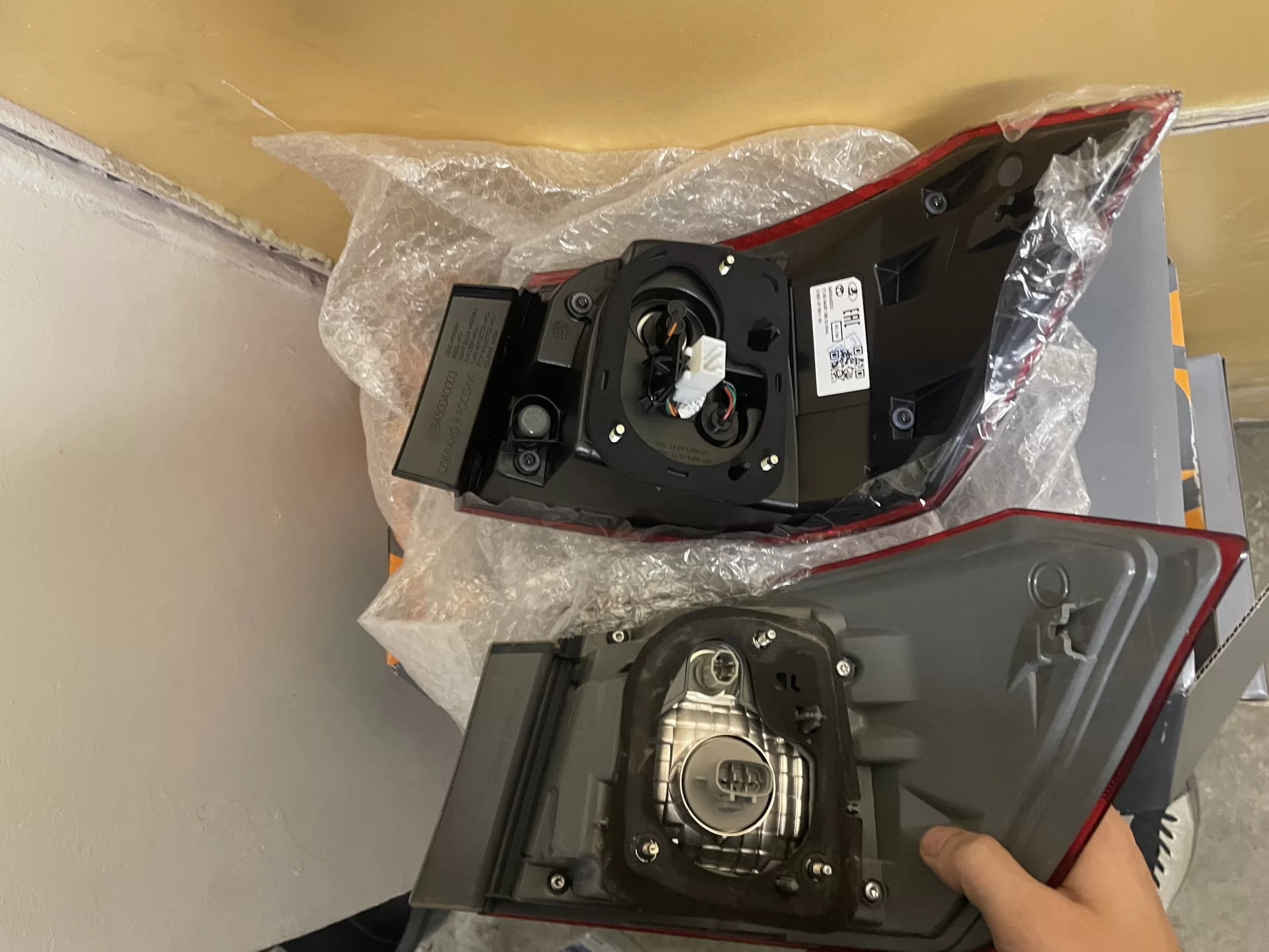 Сравнение разъемов старого и нового фонаря, а также примерка нового фонаря на старую Весту (обратите внимание на зазор между фонарем и бампером):