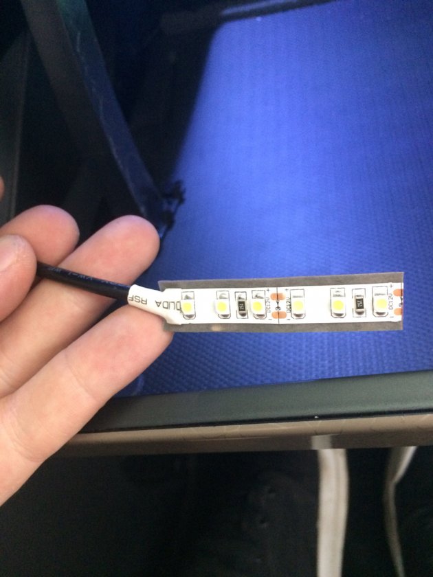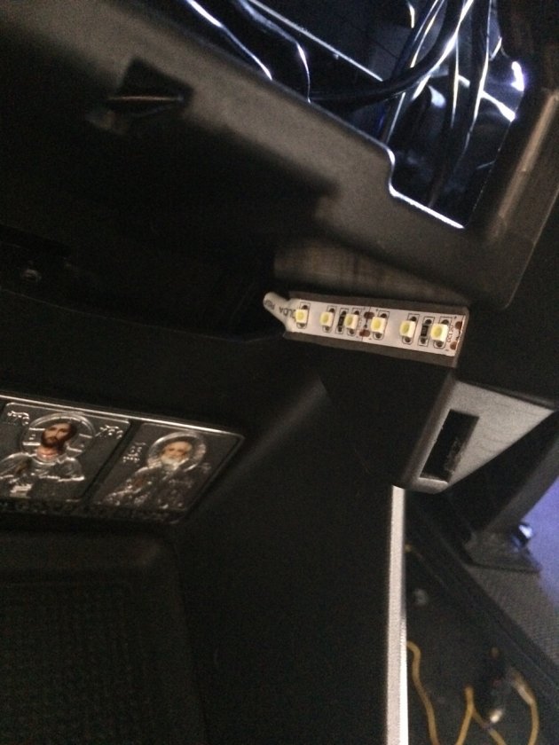 Потребуется: пластиковый уголок, светодиод, двухсторонний скотч и провода. Либо купить готовый комплект для подсветки нишы тоннеля Весты.