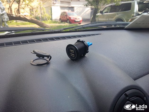Можно распечатать USB розетку на 3d принтере, которая вставляется в штатное отверстие на Lada Vesta (автор):