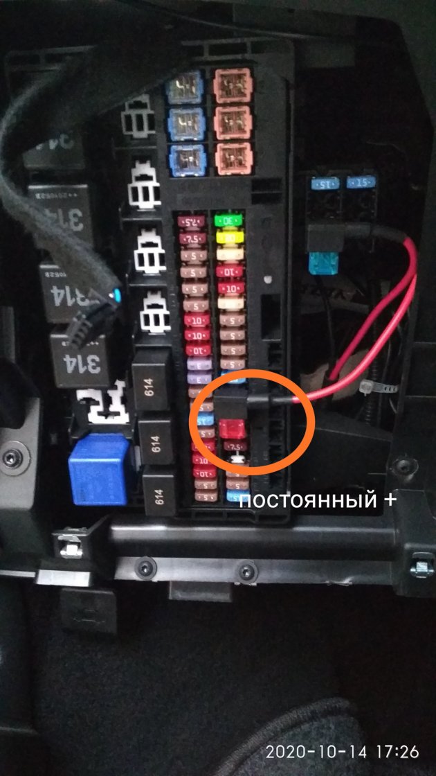 Во-втором случае плюс прокладываем из моторного отсека в салон через штатное отверстие над педалями. Тянем его в багажник под пластиковым порогом по левой стороне.