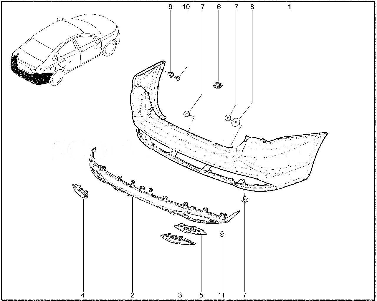 Задний бампер в сборе накладками (артикул только бампера артикулы 8450040066, 8460008780, 8460008781, цена около 13,5 тысяч рублей)