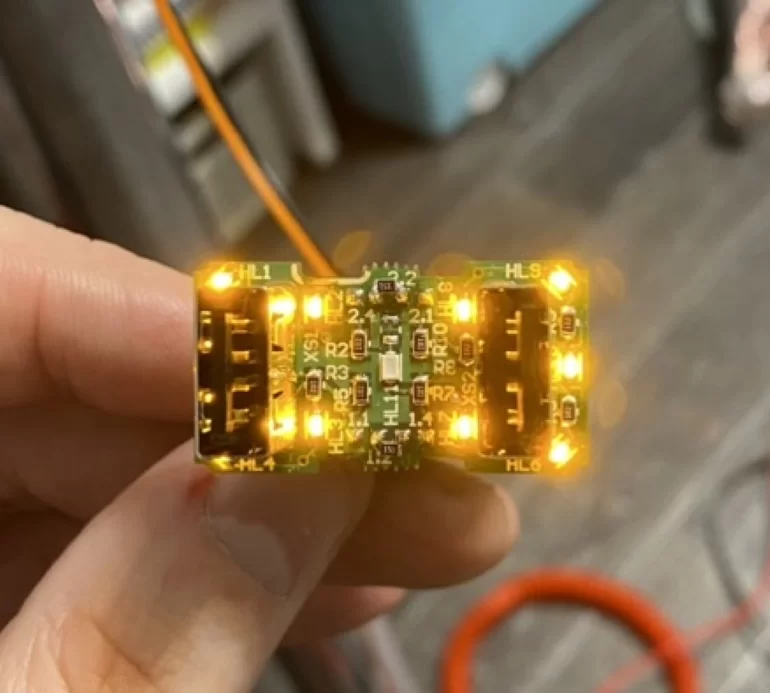 На данном этапе решил поэкспериментировать с подсветкой и индикацией передней панели. Вернул линию габаритов: