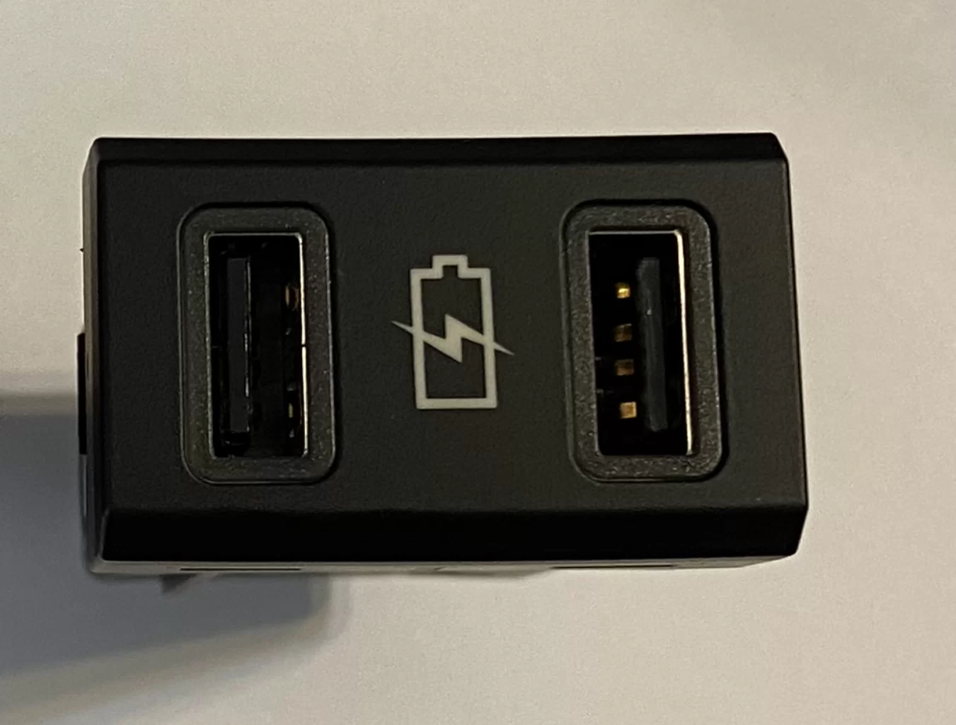 В зависимости от версии исполнения штатная USB зарядка на Lada Vesta NG (New Generation, новое поколение) может имеет разную реализацию подсветки. У меня была подсветка только иконки батареи, которая загорается при повороте ключа в АСС (т.е. постоянно). Я решил доработать конструкцию и сделать подсветку USB портов.