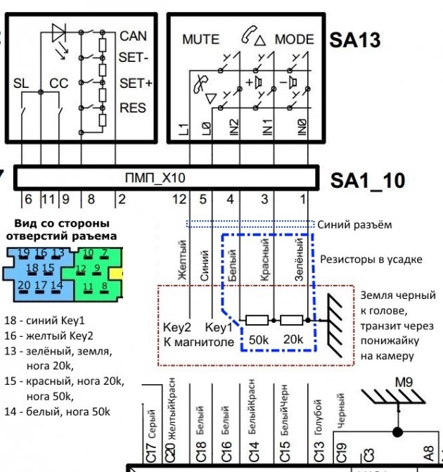 Чтобы кнопки на руле начали работать на магнитоле Android следует изготовить специальный переходник и подключить его по следующей схеме: