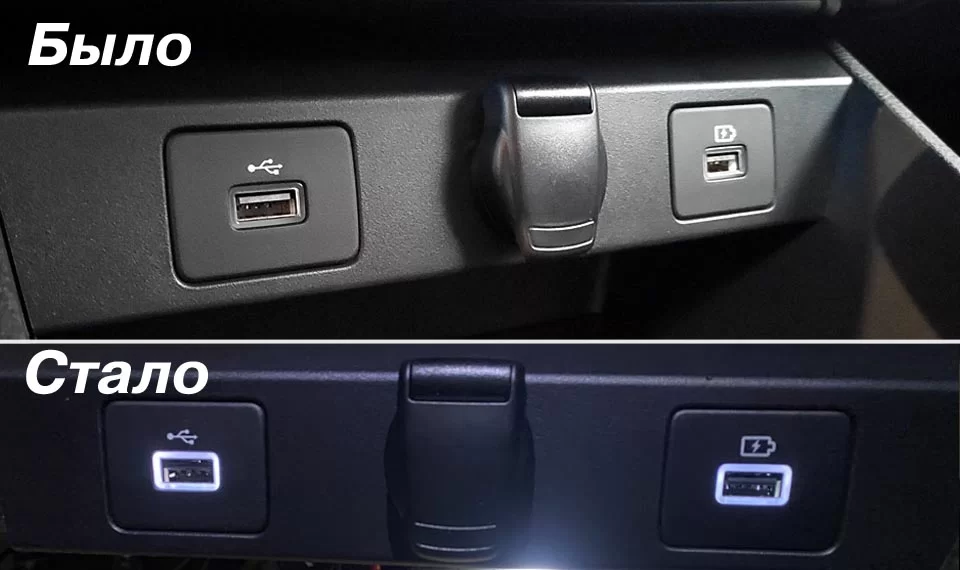 Инструкцией поделились владельцы Lada Vesta NG (Kirill-sks, NikolayKartashov и Serg96rus). Не обошлось без помощи maxflomaster, местного гуру в области разъемов и всего, что с ними связано (кстати, он сам изготавливает и продает различные жгуты для Весты). Каждый реализовал подсветку USB портов своим способом.