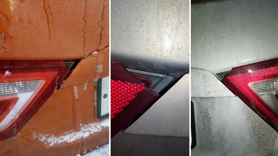Обламываться крайняя часть заднего фонаря может из-за излишнего натяжения материала. Обратите внимание, чтобы зазор между фонарем и кузовом был равномерным. Если фонарь установлен не верно, перетянут, то он будет упираться и может легко натереть ЛКП кузова, а при закрытии крышки багажника уголок фонаря может обломиться.