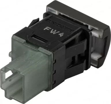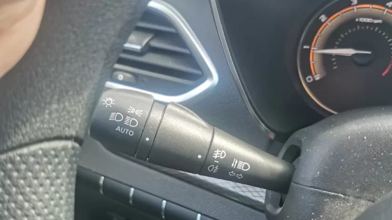 - Штатный, заводской (управление ПТФ осуществляется через подрулевой переключатель и электронный блок управления).
