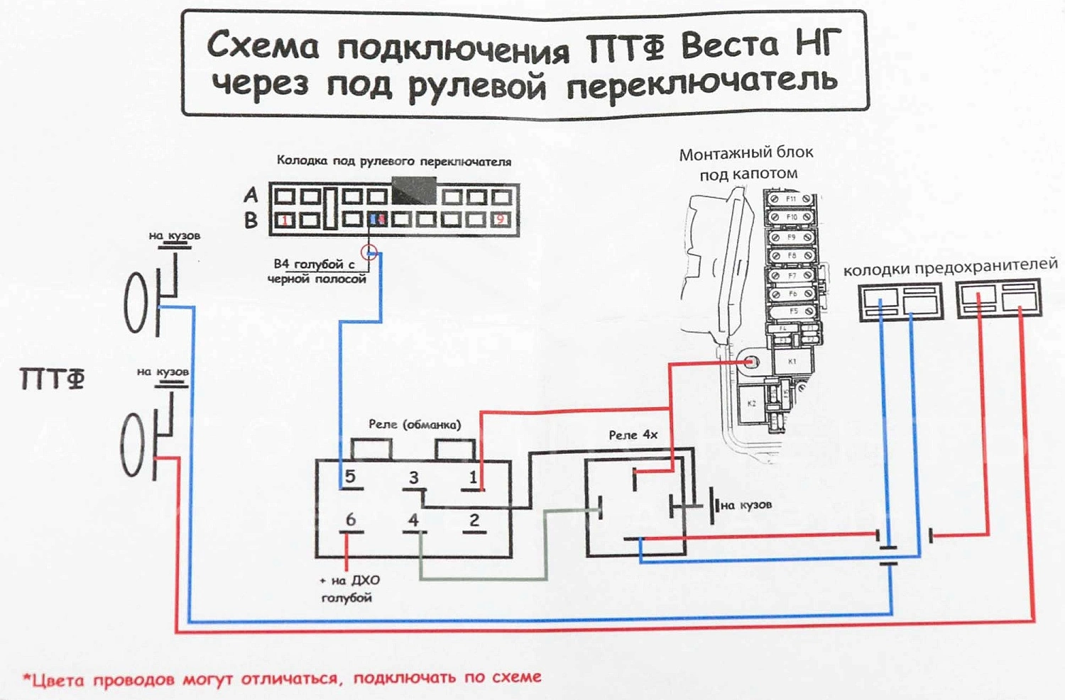 Нужно будет изготавливать проводку от уБЦМ до ПТФ (оригинальной проводки ПТФ не существует, т.к. она идет в составе общего жгута проводов моторного отсека и отдельно не продается). Затем активировать ПТФ в уБЦМ и индикацию на приборке.