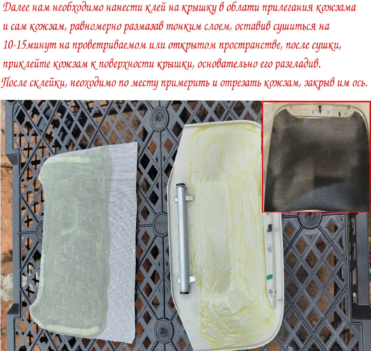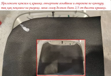 - Вклеивание кожзама для защиты от износа очков на крышку очечника и подрезка излишек.