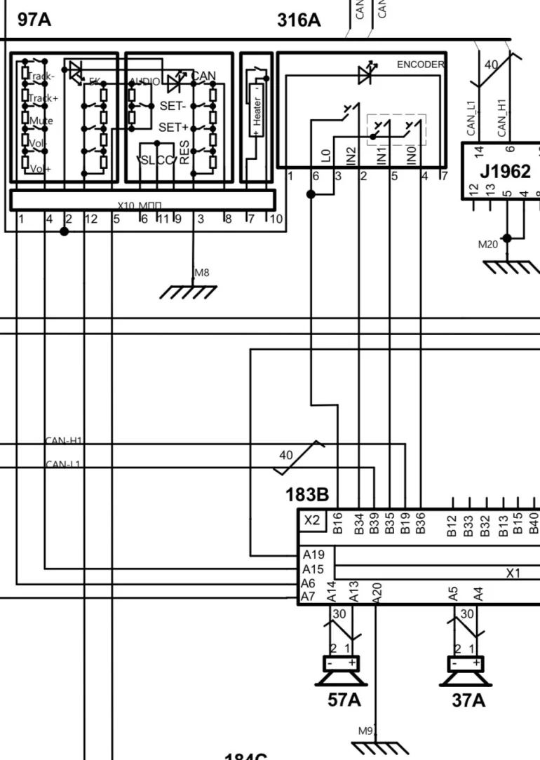 1 - Кнопки мультимедийной системы (ММС) - общий (два провода идут напрямую в ММС и приборку)