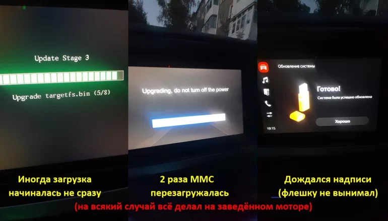 - Дождаться окончания обновления следуя инструкциям на экране. ММС в процессе обновления может перезагружаться несколько раз. После окончания обновления будет надпись «Готово».