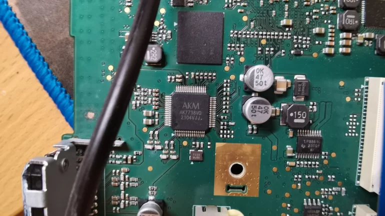 2. Разобрать ее (для справки: усилитель TDA75616ep-hlx, звуковой процессор AK7738VQ).