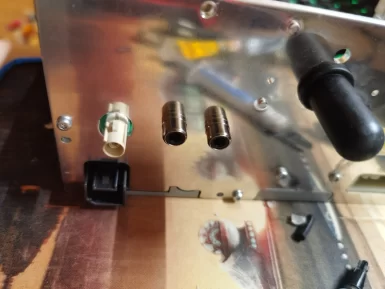 6. В задней пластине просверливаем два отверстия (если нужен линейный выход и фронта и тыла, то четыре), вставляем и прикручиваем разъемы RCA.