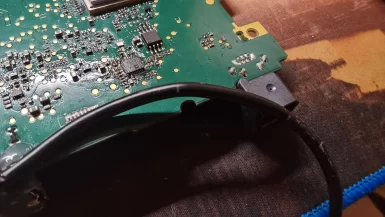 4. Немного подточить плату в месте прохода кабеля, чтобы задняя пластина плотно встала.