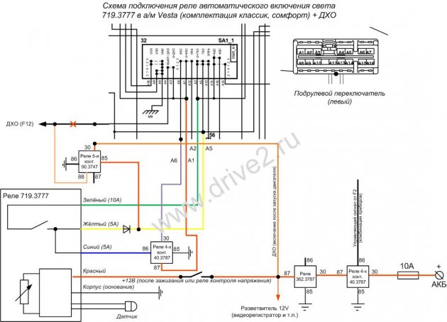 Опция «Автовыключение света фар» в настоящее время доступна только на Luxe и Exclusive комплектациях Lada Vesta. На остальных версиях автомобиля нужно не забывать выключать ближний свет при отключении зажигания, иначе за ночь горящие габариты посадят аккумулятор. Расскажем, как дооснастить Весту этой опцией комфорта своими руками.