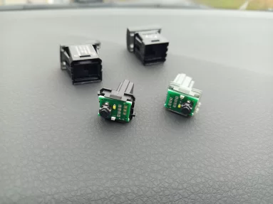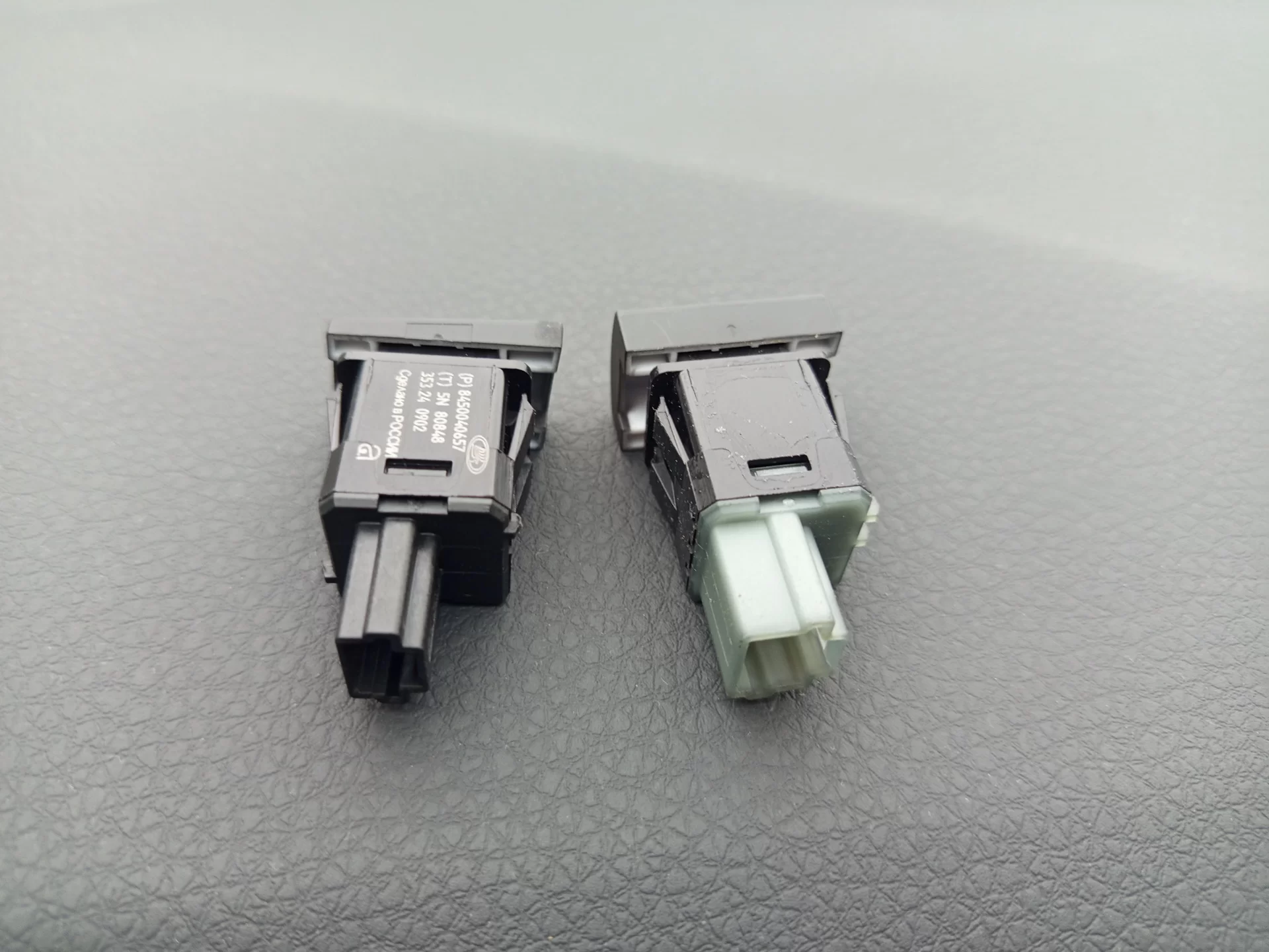 Берём кнопку от обогрева лобового стекла и открытия багажника и разбираем их: