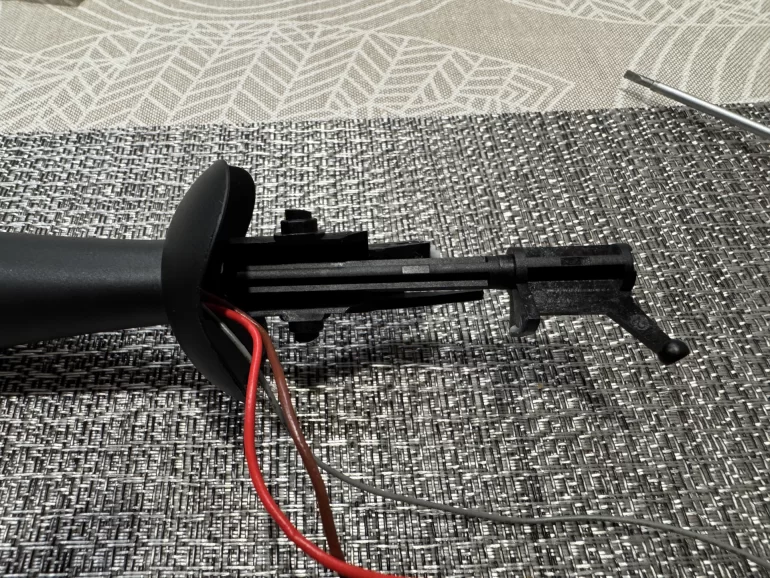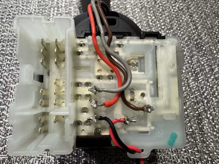 2. Отпаять провода, идущие в рычаг переключателя, (на фото красный и коричневый)