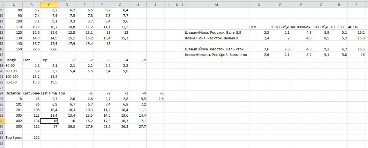 Замеряли разгон специальным прибором Drag-On. В результате заездов была составлена таблица замеров на разных конфигурациях (последний замер на ресивере делался на легких кованых дисках, все остальные на обычной штамповке):