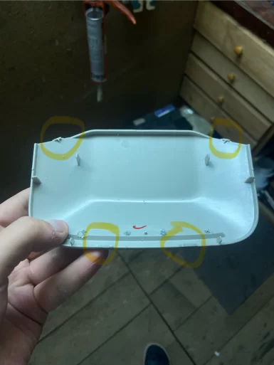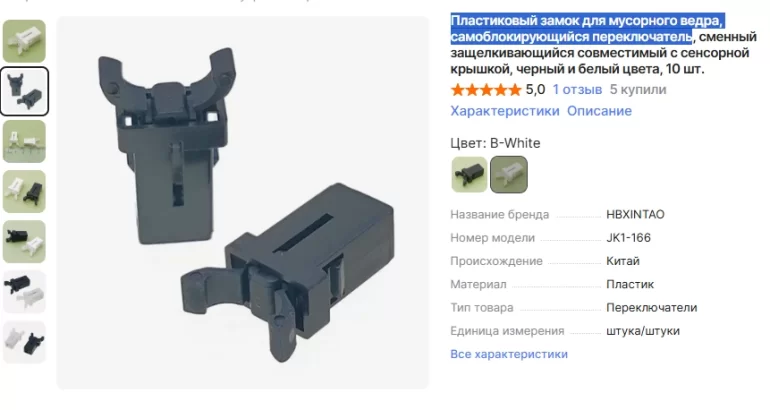 2. Защёлка для очечника. Купить ее можно на маркетплейса (искать по названию «Пластиковый замок для мусорного ведра»).