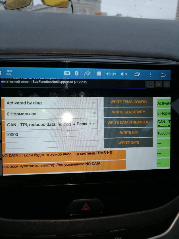 16. Добрый день. Делаю через телефон, не хочет прописываться в блоке абс активацию через диалог, какой только тайм-аут не ставил. Что может быть? Да, и у меня нет по умолчанию 10000км и 180 дней. Все строчки зеленые с прочерками и в верхнюю Activated ну никак не записывается!