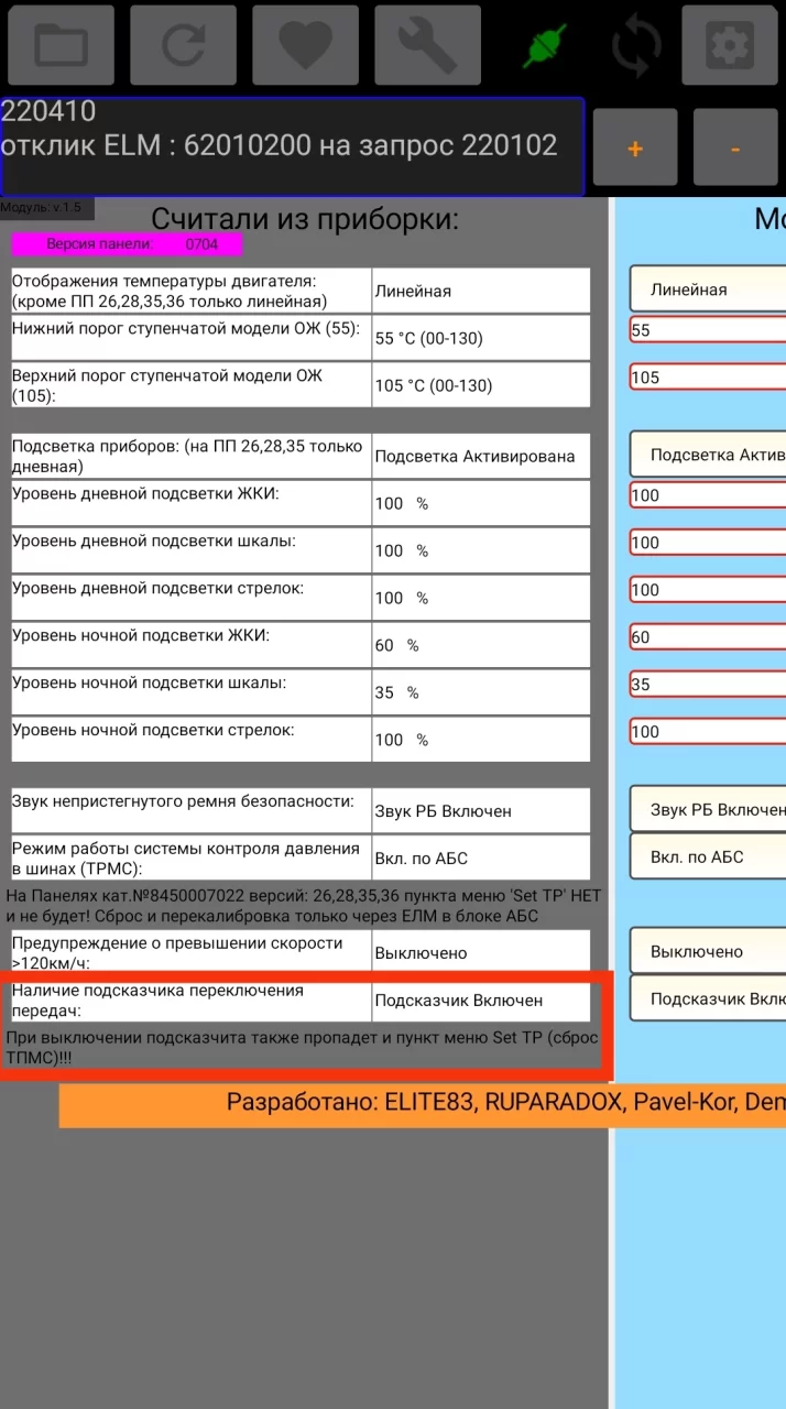 1. При активации TPMS на основе датчиков ABS у меня не появлялся на приборке пункт "SEt TP". В ECU Tweaker обнаружил подсказку, что при отключении подсказчика переключения передач отключится и "SEt TPя". Включил подсказчик — пункт SEt TP появился. В статье это не упоминается.