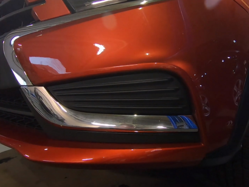 Установка выполняется без снятия бампера, поверх штатных заглушек. Следует обезжирить поверхность праймером и приклеить заглушку (на стекольный клей герметик или двухсторонний скотч).