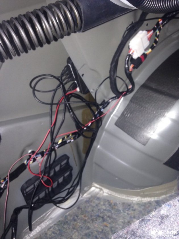 Блок управления парктроником размещаем в багажнике, используя двухсторонний скотч. Для подключения потребуется найти "плюс" после включения задней передачи, на автомобилях Лада - это зеленый провод заднего фонаря. Масса - черный. Дисплей парктроника чаще всего крепят над зеркалом. Для этого протягиваем провода из багажника в переднюю часть автомобиля под облицовкой пола. Затем за панелью, за накладкой стойки ветрового стекла и под обшивкой потолка (демонтируя солнцезащитный козырек).