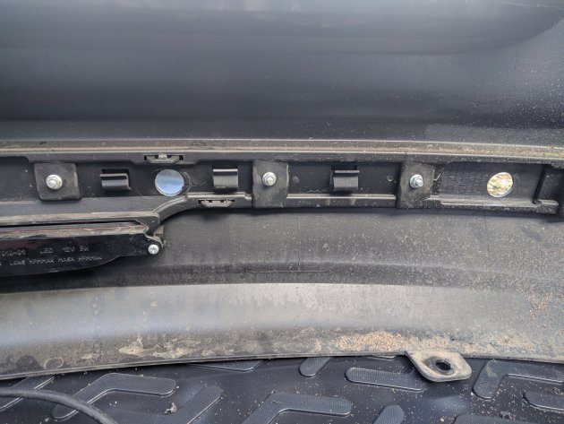 Протащить провода от датчиков парковки в багажник (в данном случае Лада Гранта лифтбек) можно не снимая бампер. Достаточно отвернуть пару винтов снизу, чтобы получить доступ к штатному отверстию с левой стороны. Проводку прокладываем через тугой, резиновый уплотнитель.