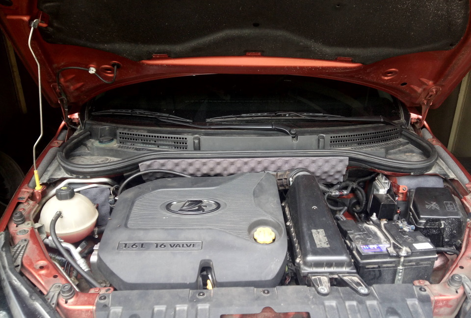 Владелец Lada Vesta решил сделать полную шумоизоляцию подкапотного пространства: