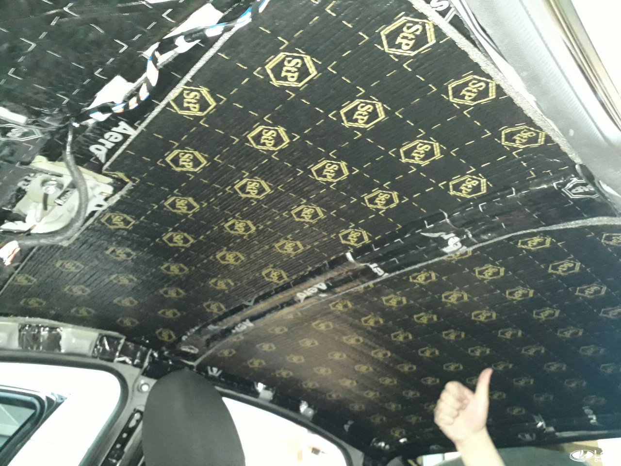 Поверх вибропласта вторым слоем наклеиваем шумоизолятор/теплоизолятор на все 100% поверхности. Провода обклеиваем антискрипом (маделин). Наклеивать шумоизоляцию на обшивку потолка не нужно. Осуществляем сборку в обратной последовательности. Весь процесс также показан на видео: