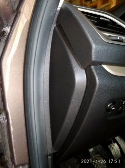 А на вашей Весте есть щель между торцом торпедо и уплотнителем? Как решили проблему?