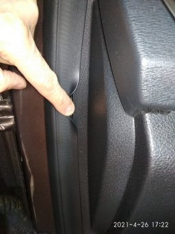 Видно, что теперь зазор между заглушкой и кузовом стал равномерным по всей длине. Теперь, вместо щели появился значительный нахлёст уплотнителя на пластик заглушки:
