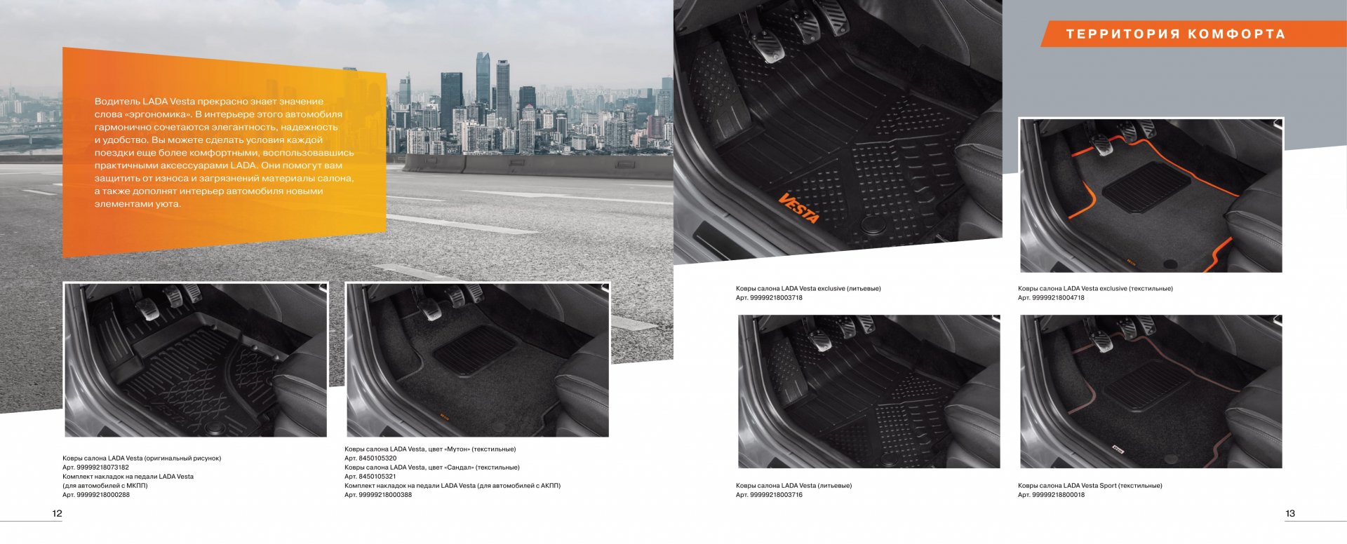 LADA Vesta — стремительный и яркий автомобиль, который прекрасно чувствует себя и на улицах мегаполиса, и на загородных шоссе. Он оптимален для любой манеры вождения и способен быть как боевым спутником бизнесмена, так и верным другом большой семьи. Но если вы хотите подчеркнуть свой индивидуальный стиль и сделать поездки за рулем еще более комфортными, динамичными и безопасными, — к вашим услугам широкая линейка оригинальных аксессуаров LADA!