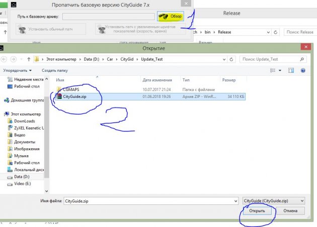 5) В диалоговом окне указываем файл с флешки "Update\CityGuide.zip"