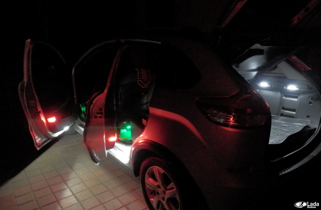 А что думаете вы на счет такой доработки Весты и XRAY? Кстати, аналогичным образом можно подключить подсветку для пола в салоне автомобиля или дополнительный плафон освещения для пассажиров заднего ряда.