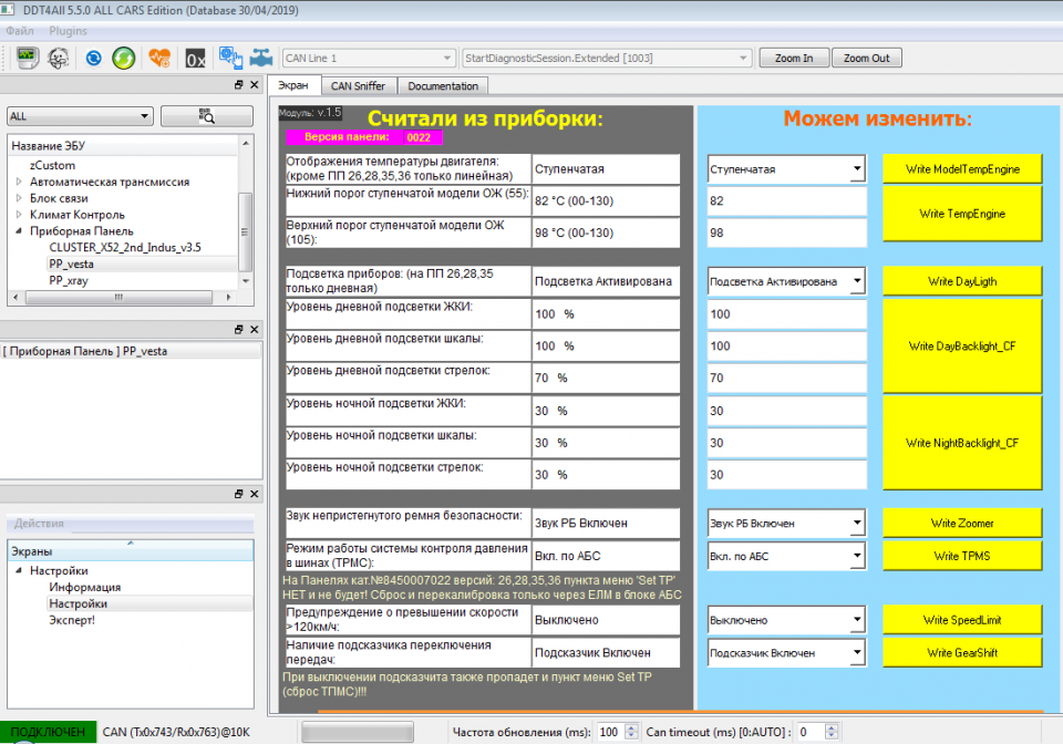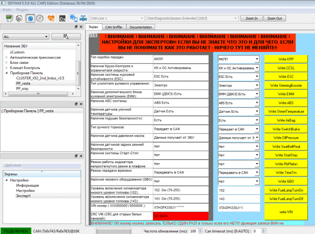 База настроек ЭБУ Lada Vesta, активируем/меняем опции через ELM327