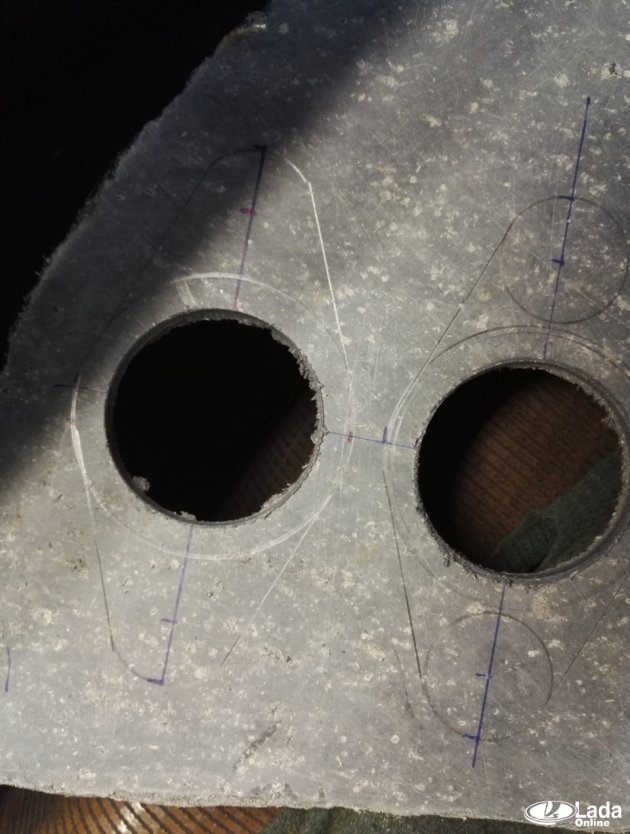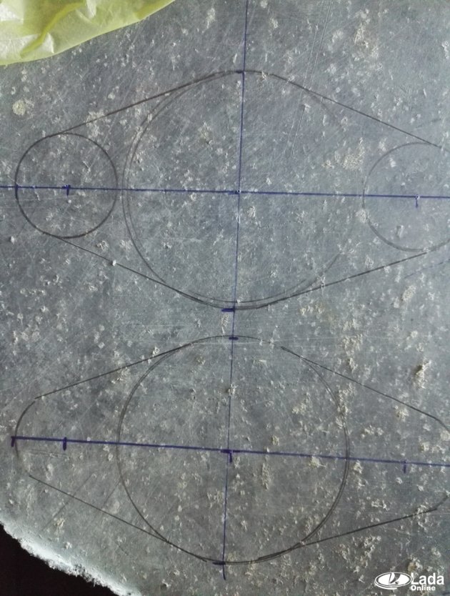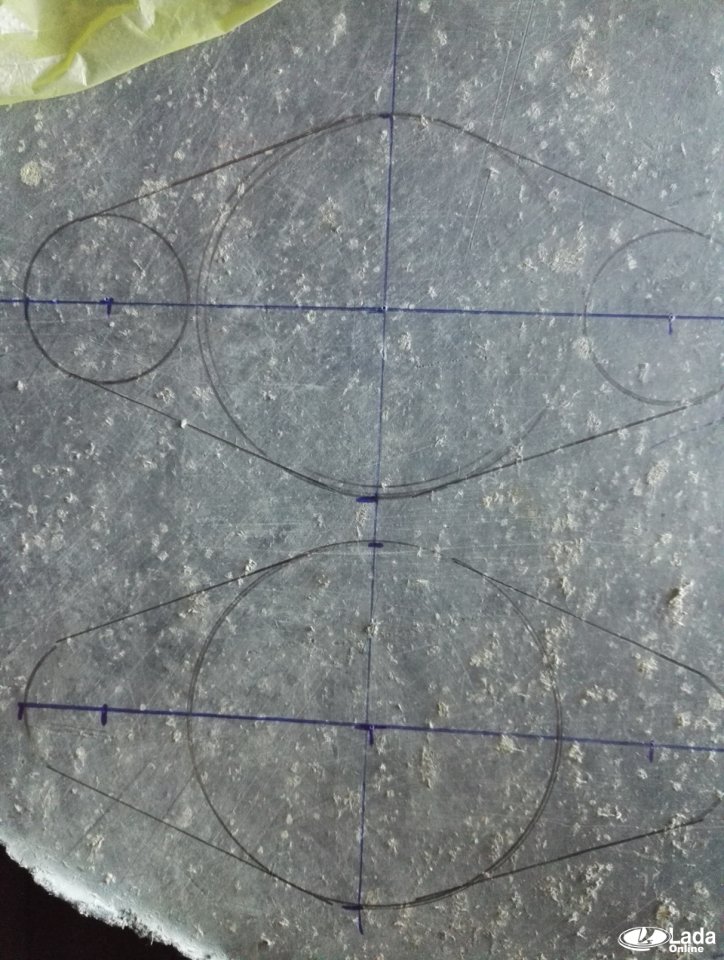 сделал центральные отверстия, отверстия под болты сделал D-11, после этого обрезаем заготовку ножницами по металлу.