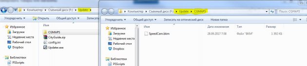 4. Скачанный файл (SpeedCam.bkm) скопировать в папку CGMAPS на SD карте (SD\Update\CGMAPS).