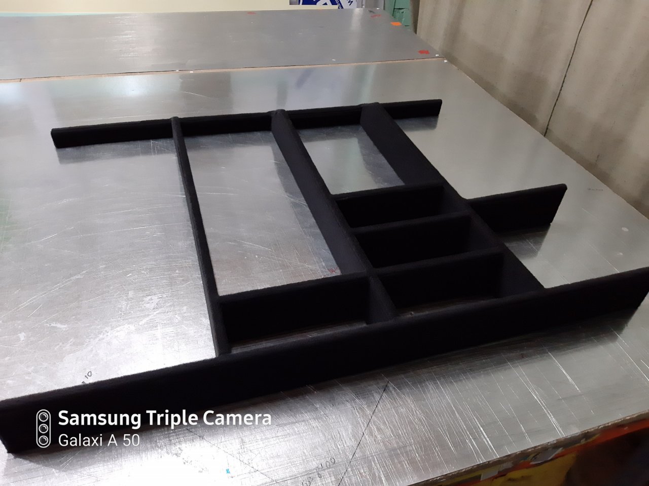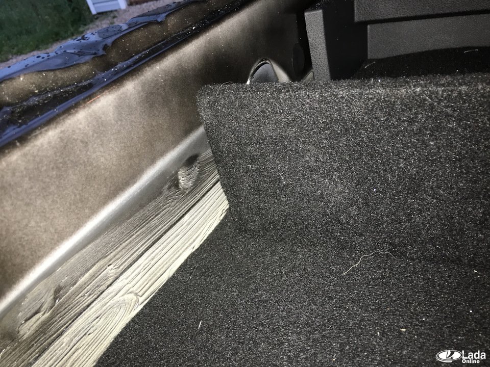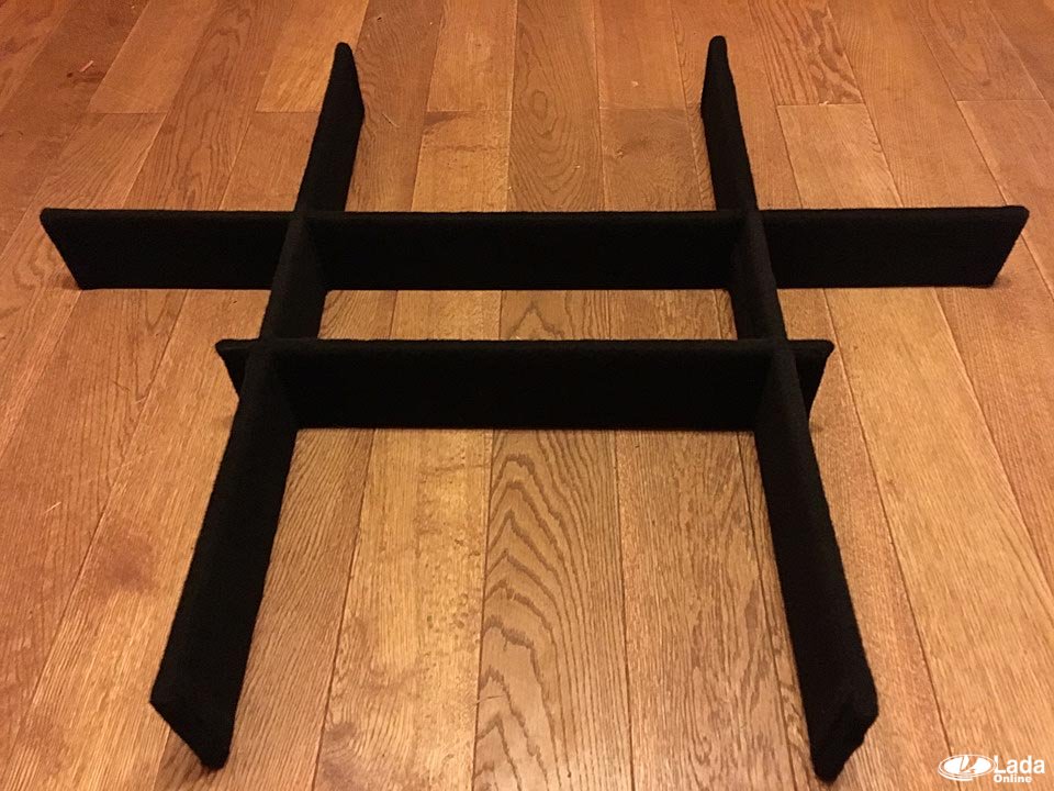 Для эстетики можно обтянуть получившиеся детали самоклеящимся карпетом (либо использовать для обтяжки мебельный степлер). После установки такого органайзера в багажник XRAY, бока конструкции будут упираться торцами в пластиковую обшивку, а сзади в проём багажника. Не урираются только края возле задних сидений, там оставляем расстояние 2-3 см.